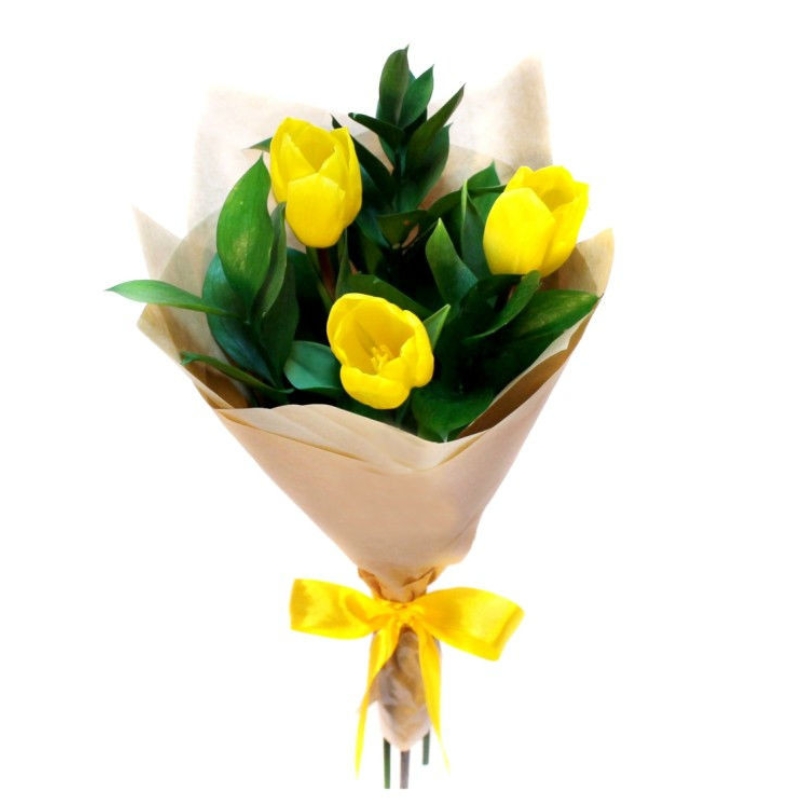 Букет из 3 желтых тюльпанов с рускусом